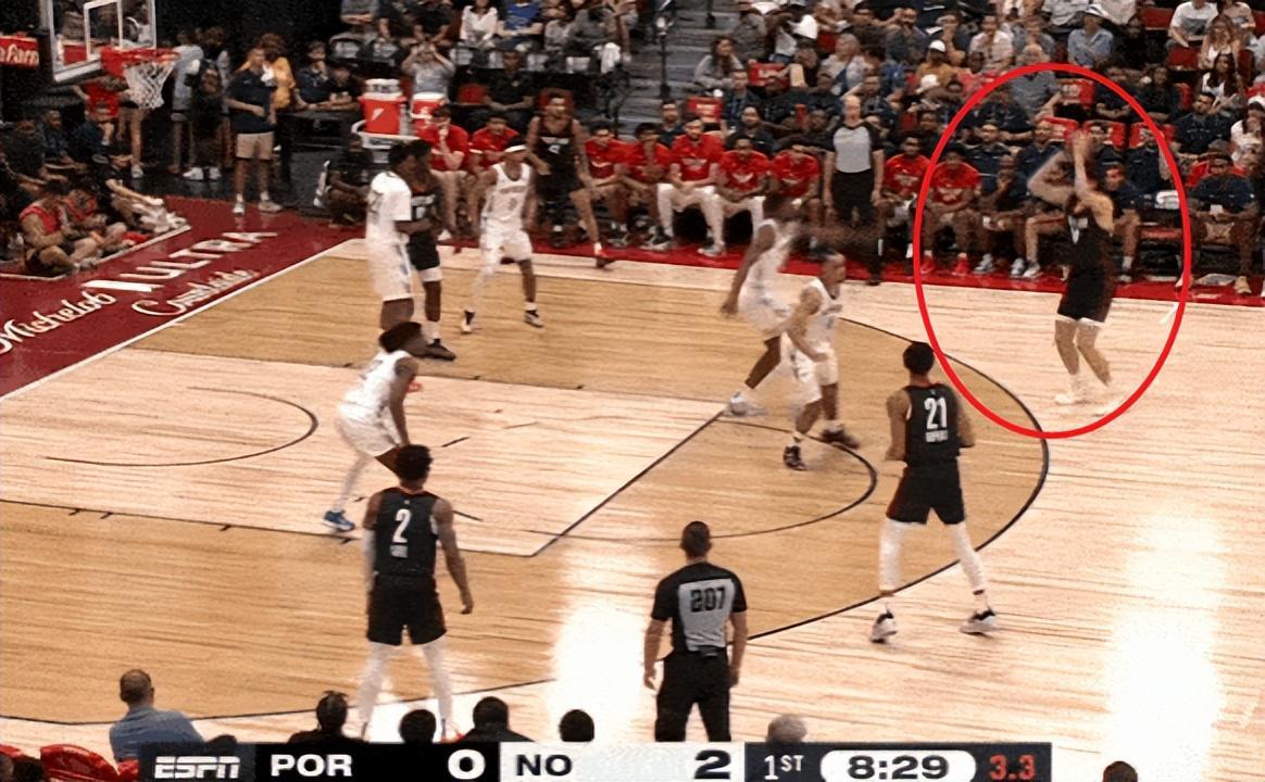 来看看这场比赛,刚开始,杨瀚森就帮助开拓者拿到首分,弧顶接球三分空心入网!这也是他自进入NBA以来,第一记空心三分球。夏联首秀小杨就进过一个三分,不过是打板命中,有一定运气成分,空心命中那就是真准,真有投射!